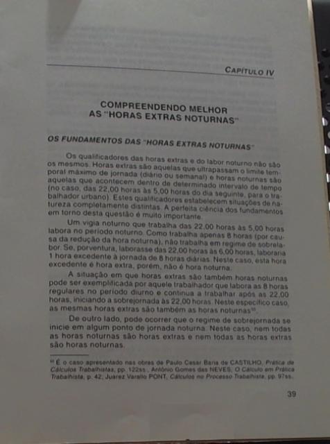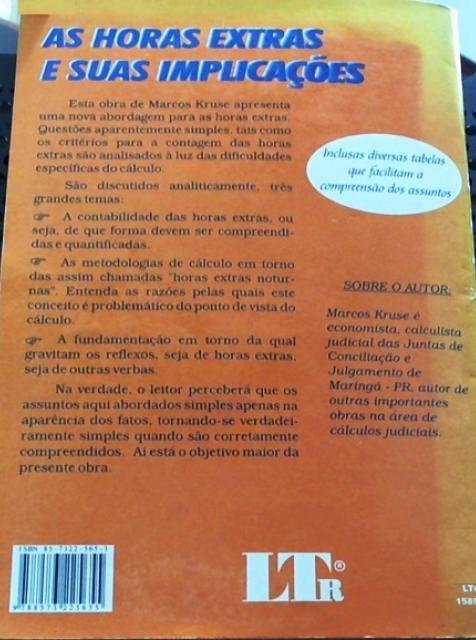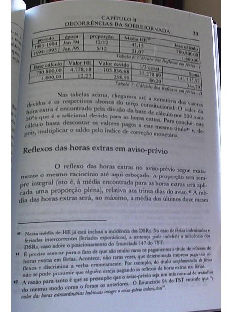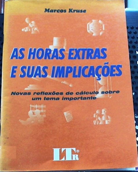 As Horas Extras e Suas Implicações, São Paulo: LTR Trata-se de obra técnica a versar sobre as as horas extras (limites, conceitos e interpretação). Discute os fatos conexos à apuração das extras a exemplo do adicional noturno e a contagem do tempo. Também outros temas relacionados com a apuração das extras são analisados a exemplo dos comandos de cálculo das extras além da 8ª diária e/ou 44ª semanal junto com as dificuldades teóricas e práticas relacionadas aos cálculos. Obra de conteúdo denso e apresentado em breve paginação com clareza de conteúdo. Esta obra está disponível para aquisição exclusivamente à LTR Editora ou junto ao seu livreiro de confiança.